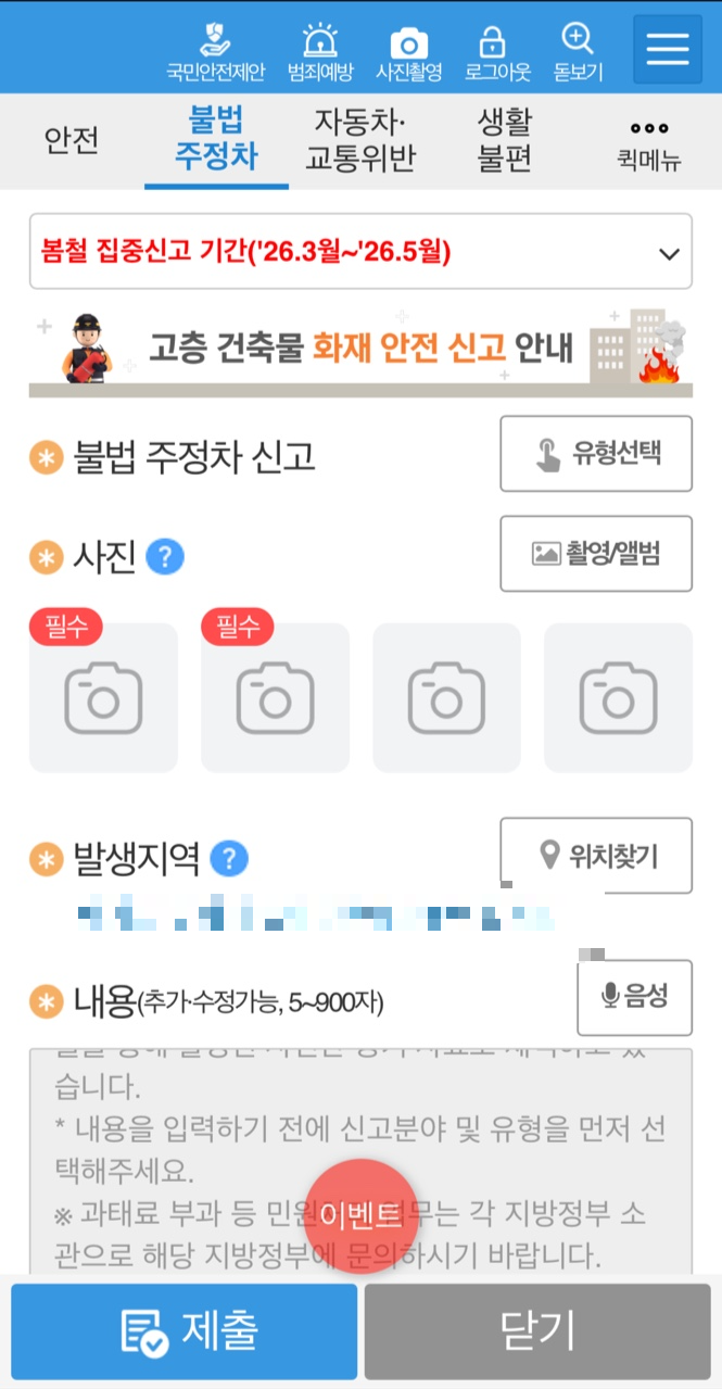 이후 안전신문고 앱을 통해 신고를 접수했습니다.